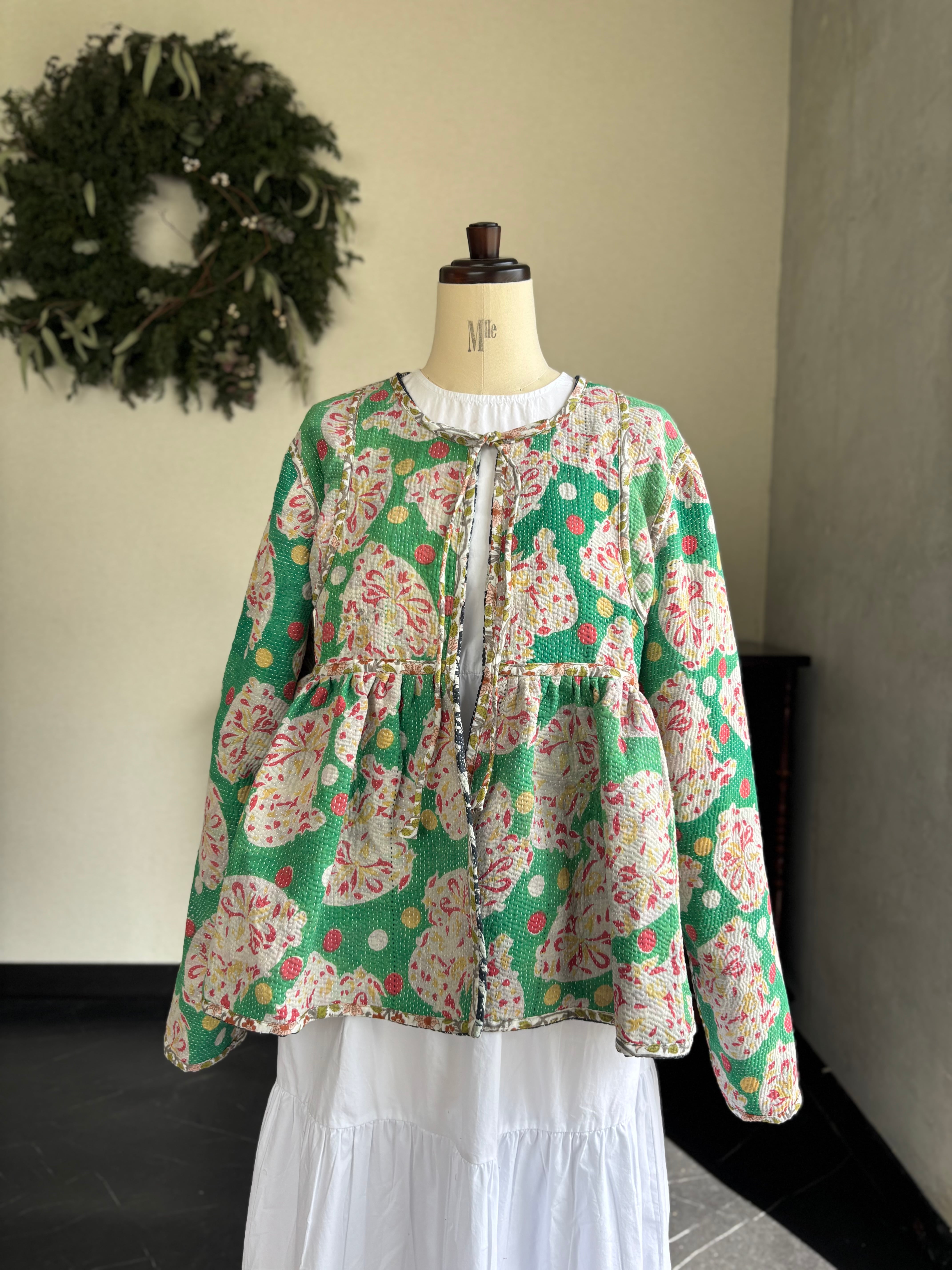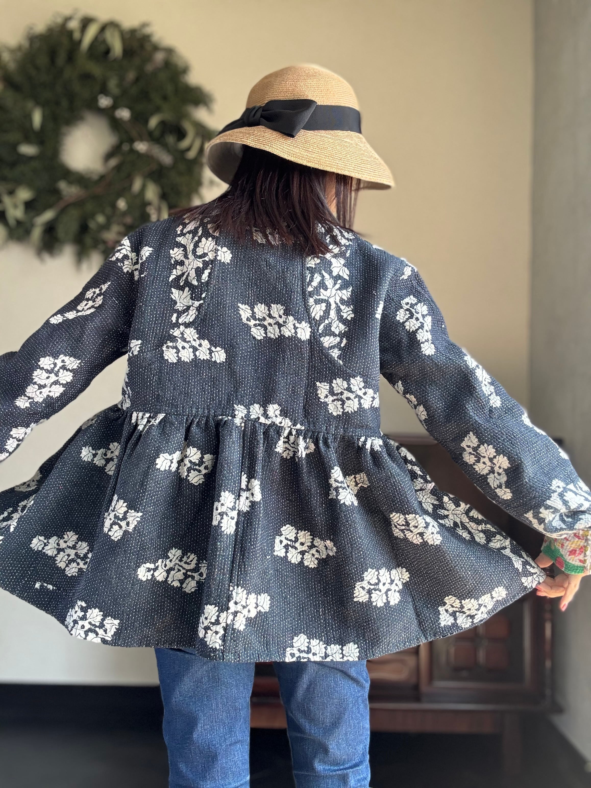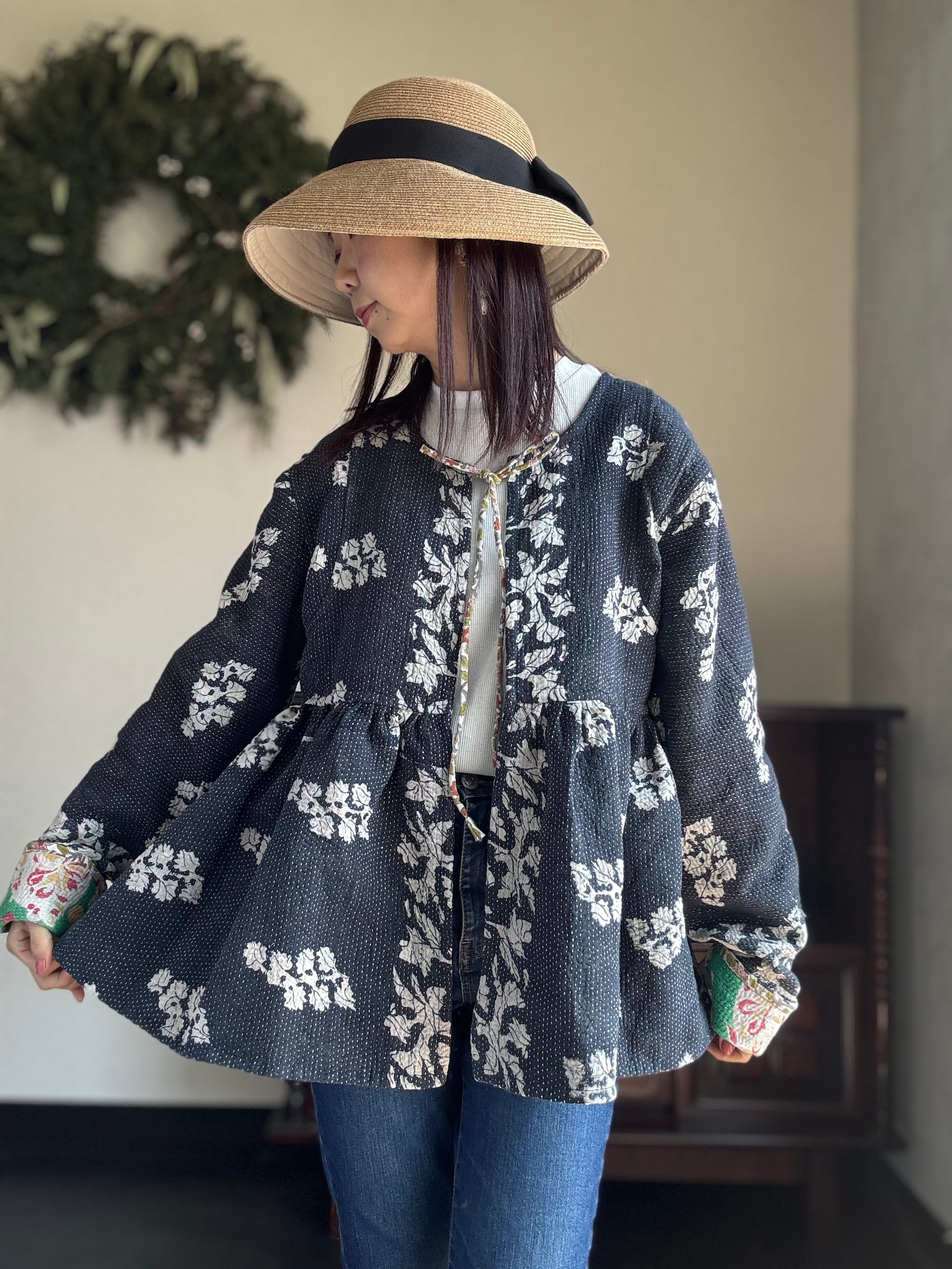 ヴィンテージのカンタ(ラリー)キルトで仕立てた、ラバリジャケットです。長い時間を旅してきた布ならではの風合いを生かした、世界にひとつだけの一点ものとなります。