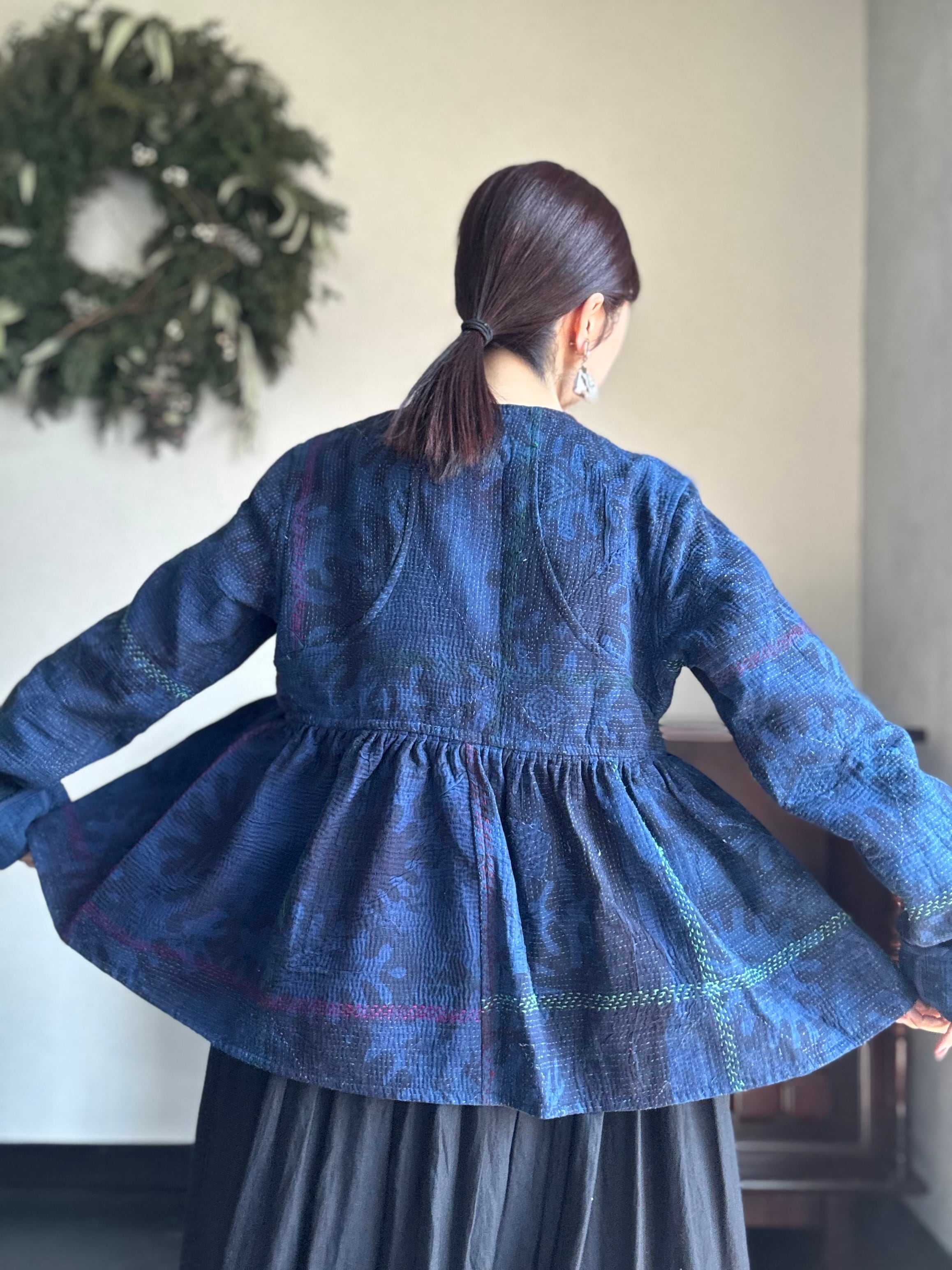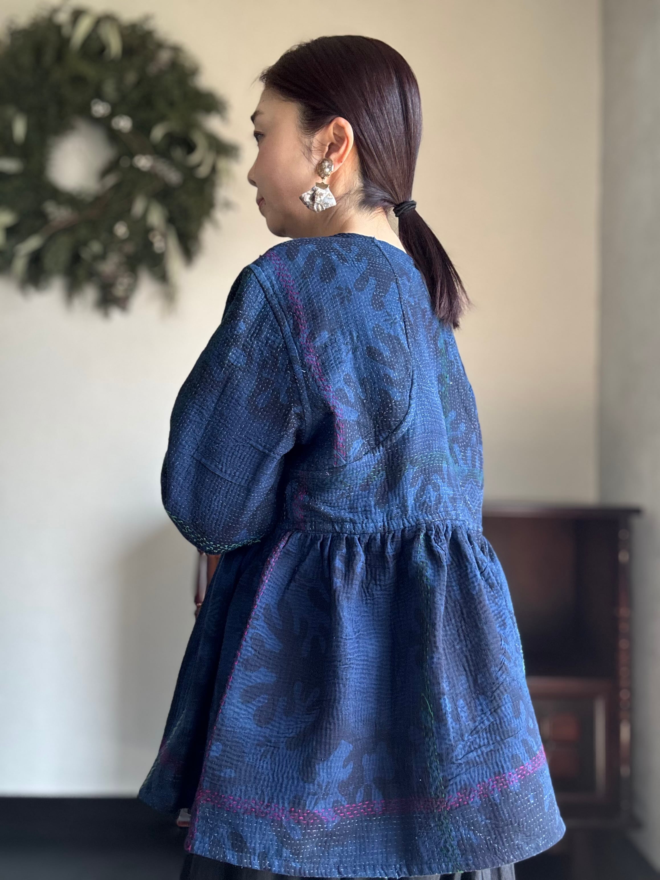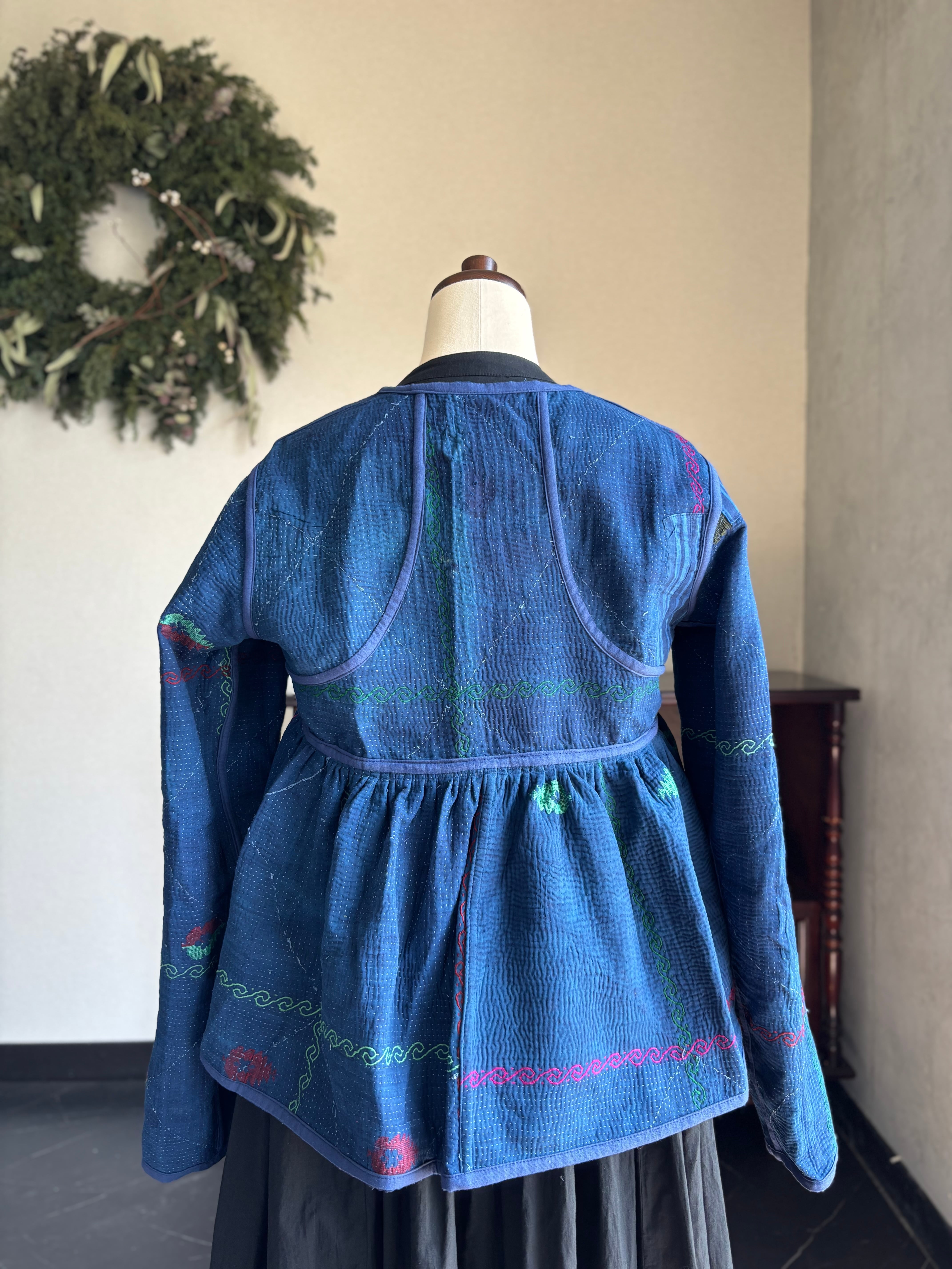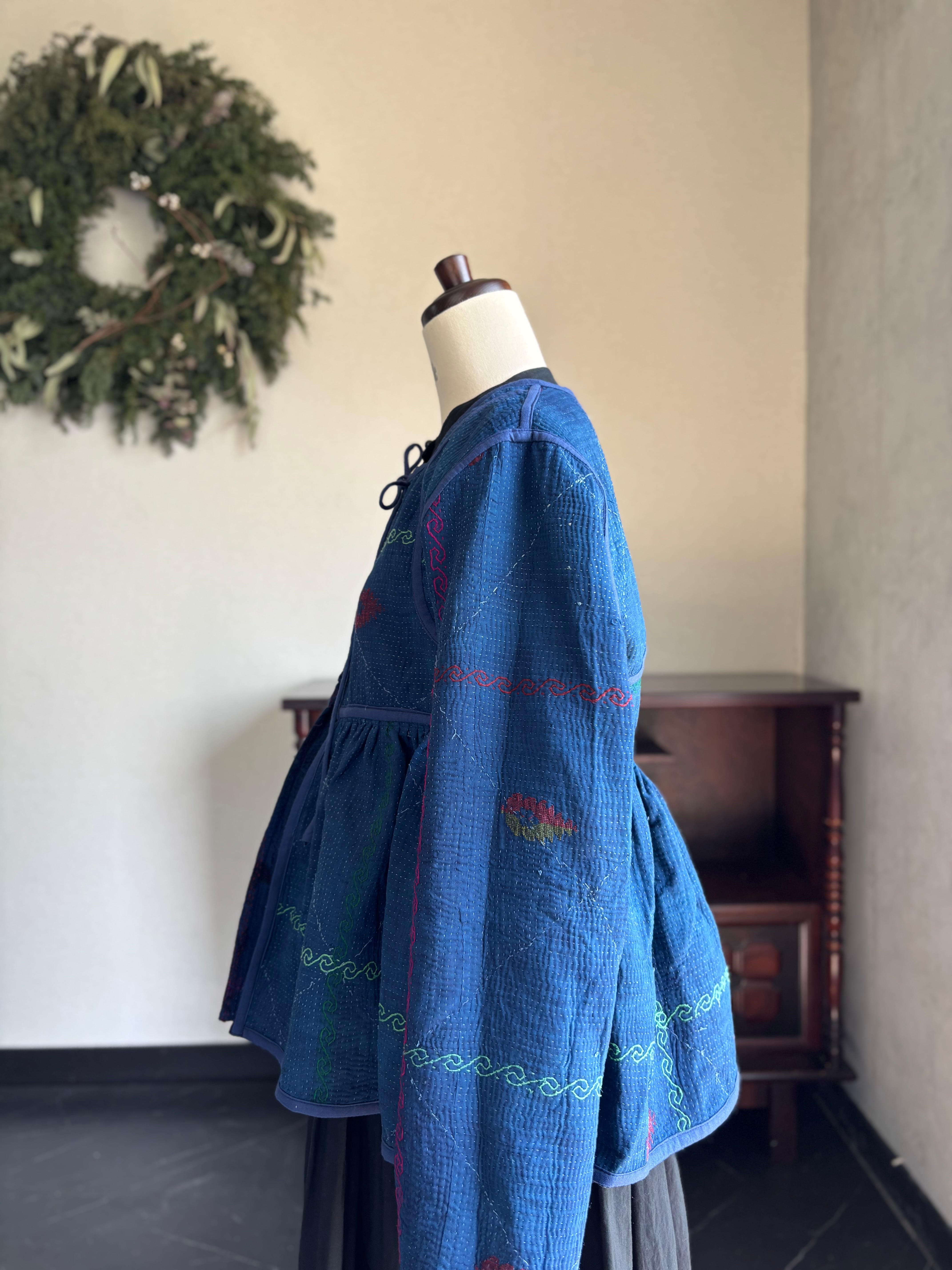 ヴィンテージのカンタ(ラリー)キルトで仕立てた、ラバリジャケットです。長い時間を旅してきた布ならではの風合いを生かした、世界にひとつだけの一点ものとなります。