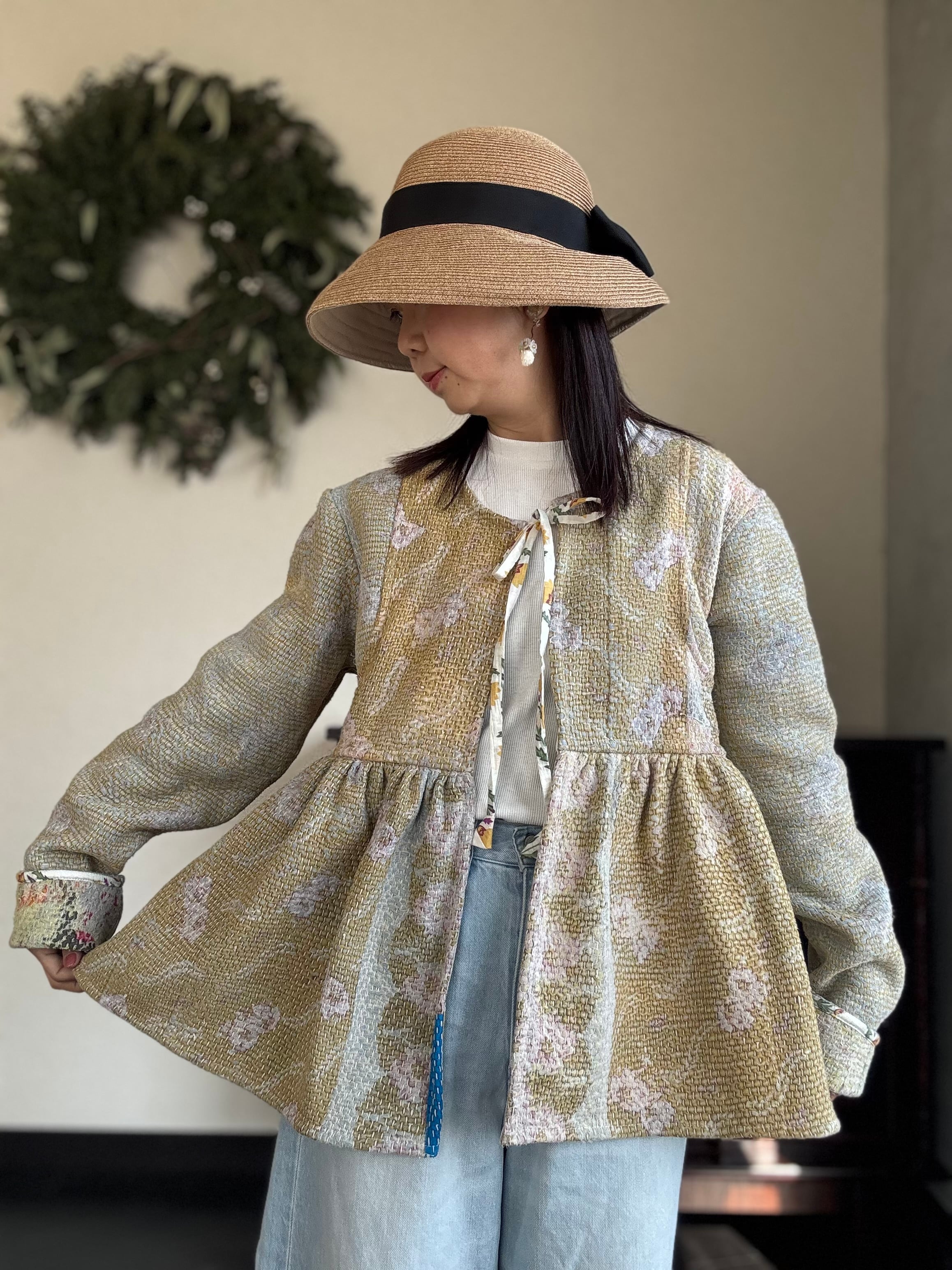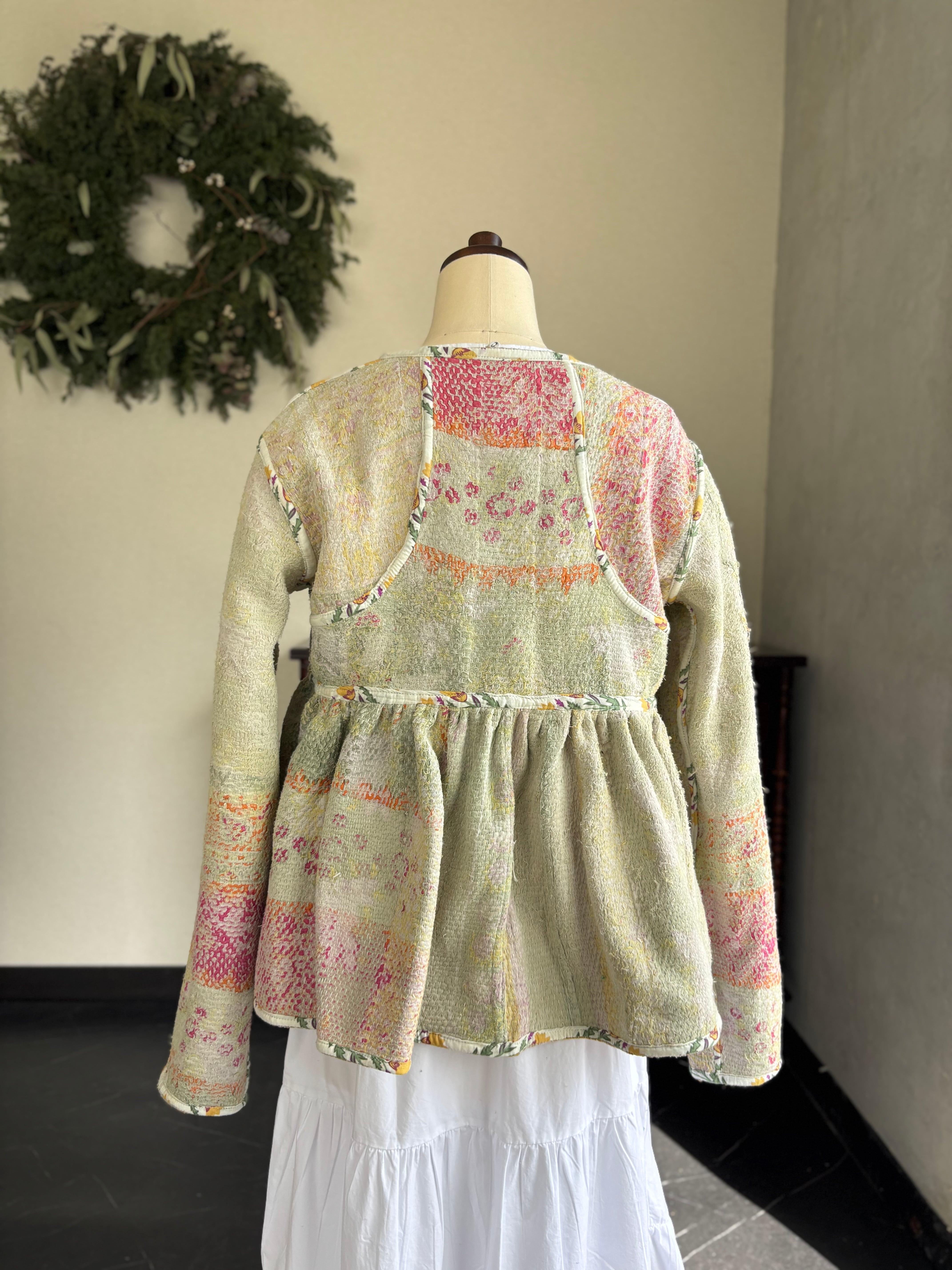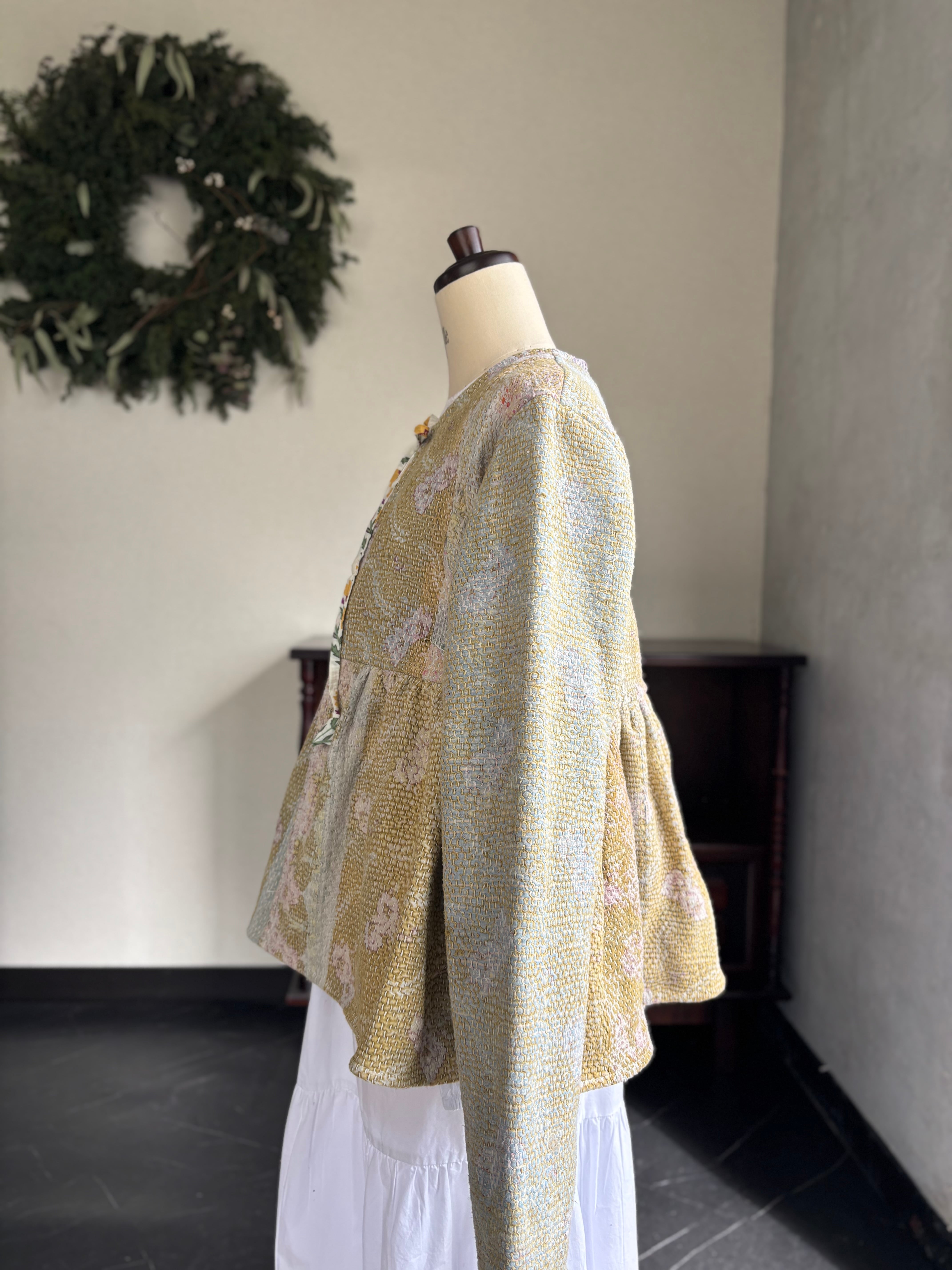 ヴィンテージのカンタ(ラリー)キルトで仕立てた、ラバリジャケットです。長い時間を旅してきた布ならではの風合いを生かした、世界にひとつだけの一点ものとなります。