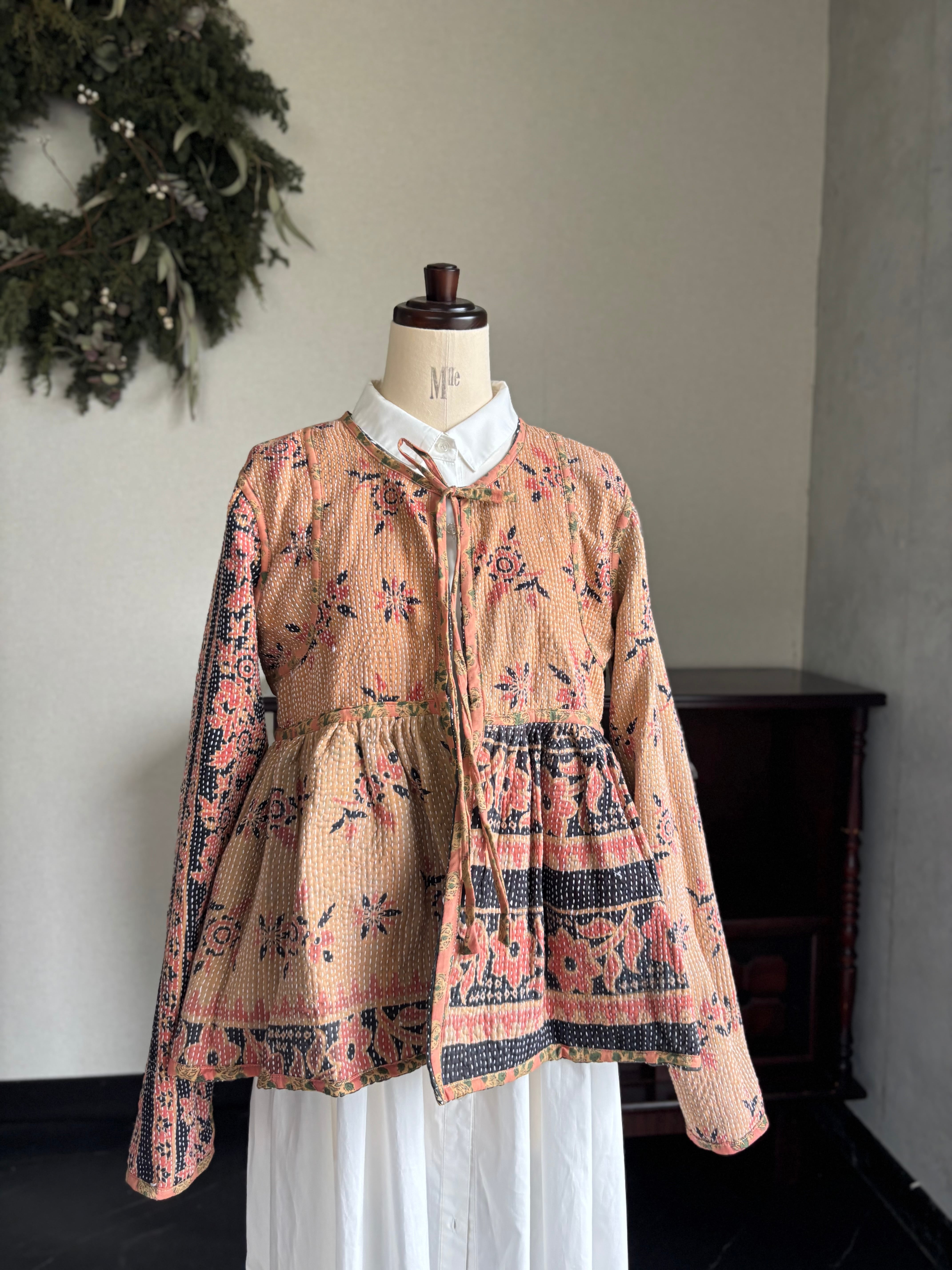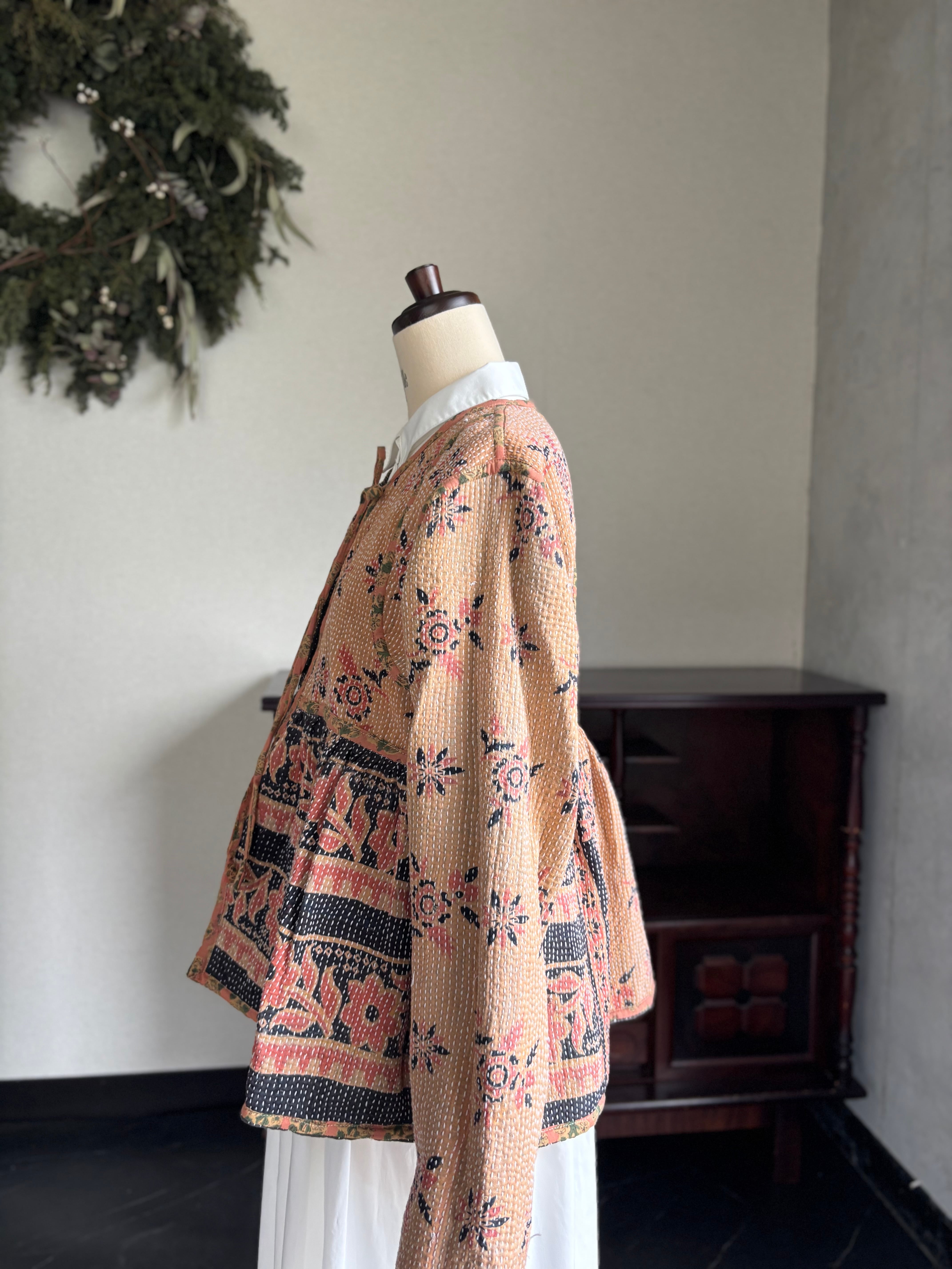 ヴィンテージのカンタ(ラリー)キルトで仕立てた、ラバリジャケットです。長い時間を旅してきた布ならではの風合いを生かした、世界にひとつだけの一点ものとなります。
