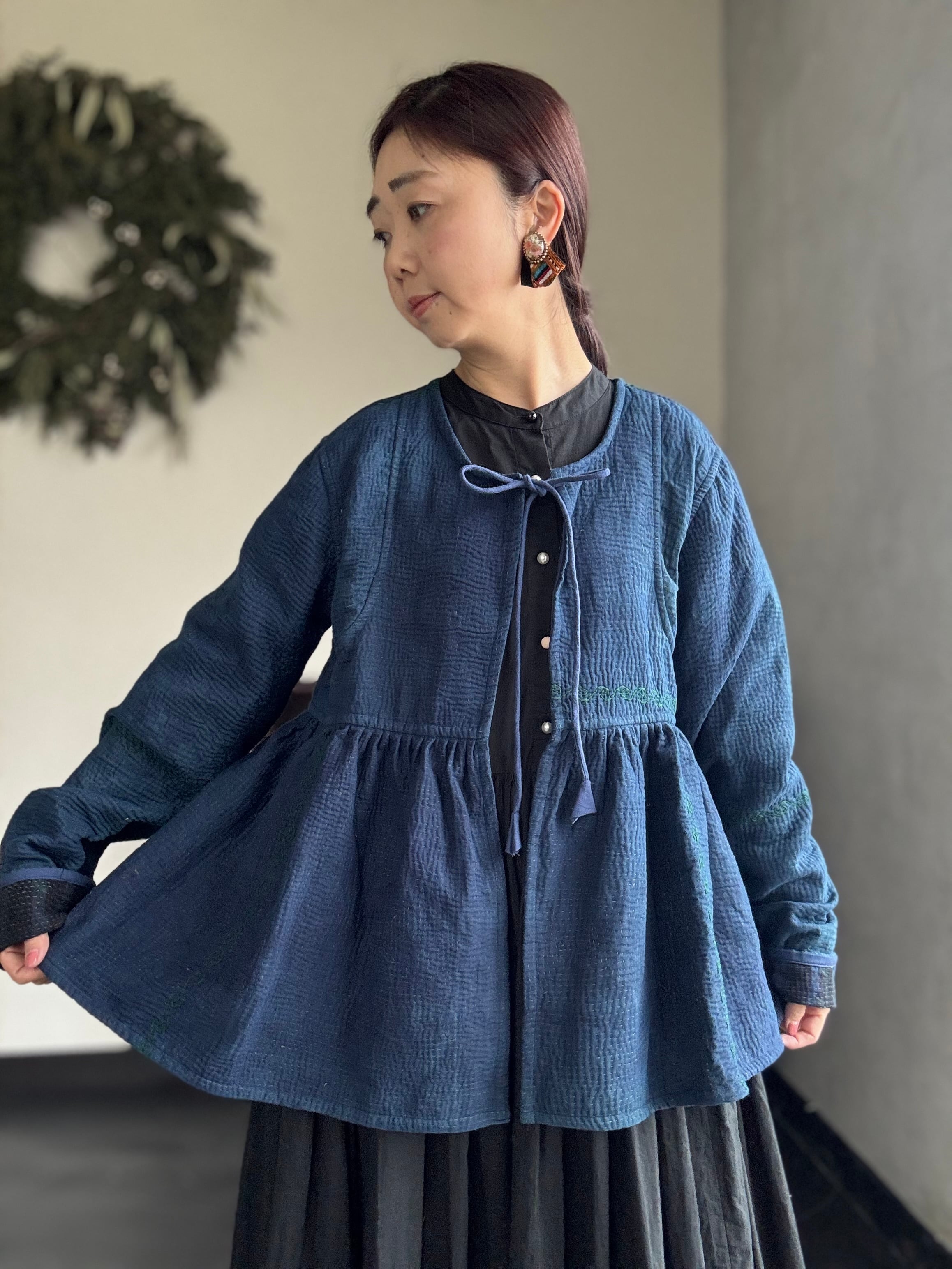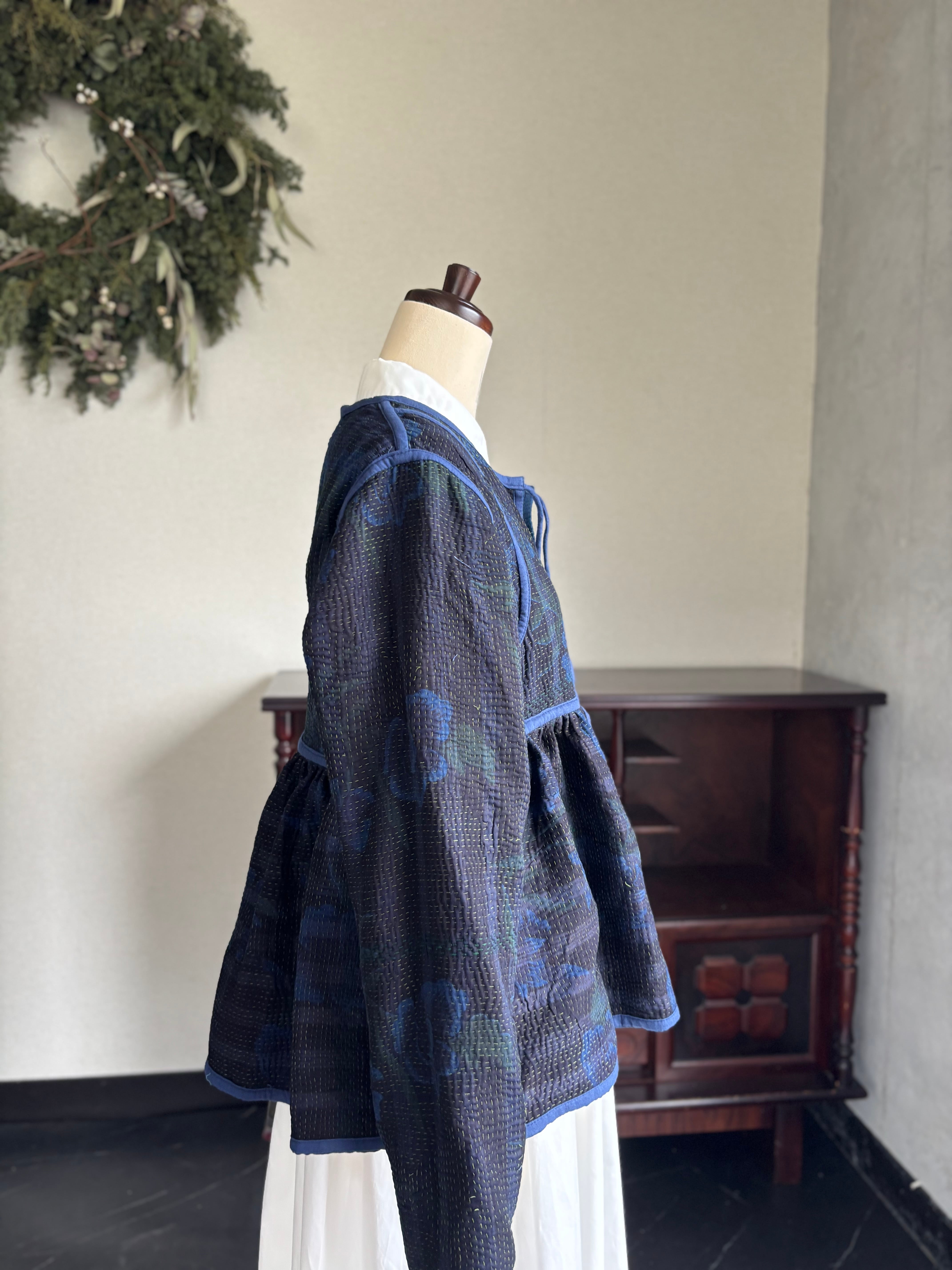 ヴィンテージのカンタ(ラリー)キルトで仕立てた、ラバリジャケットです。長い時間を旅してきた布ならではの風合いを生かした、世界にひとつだけの一点ものとなります。