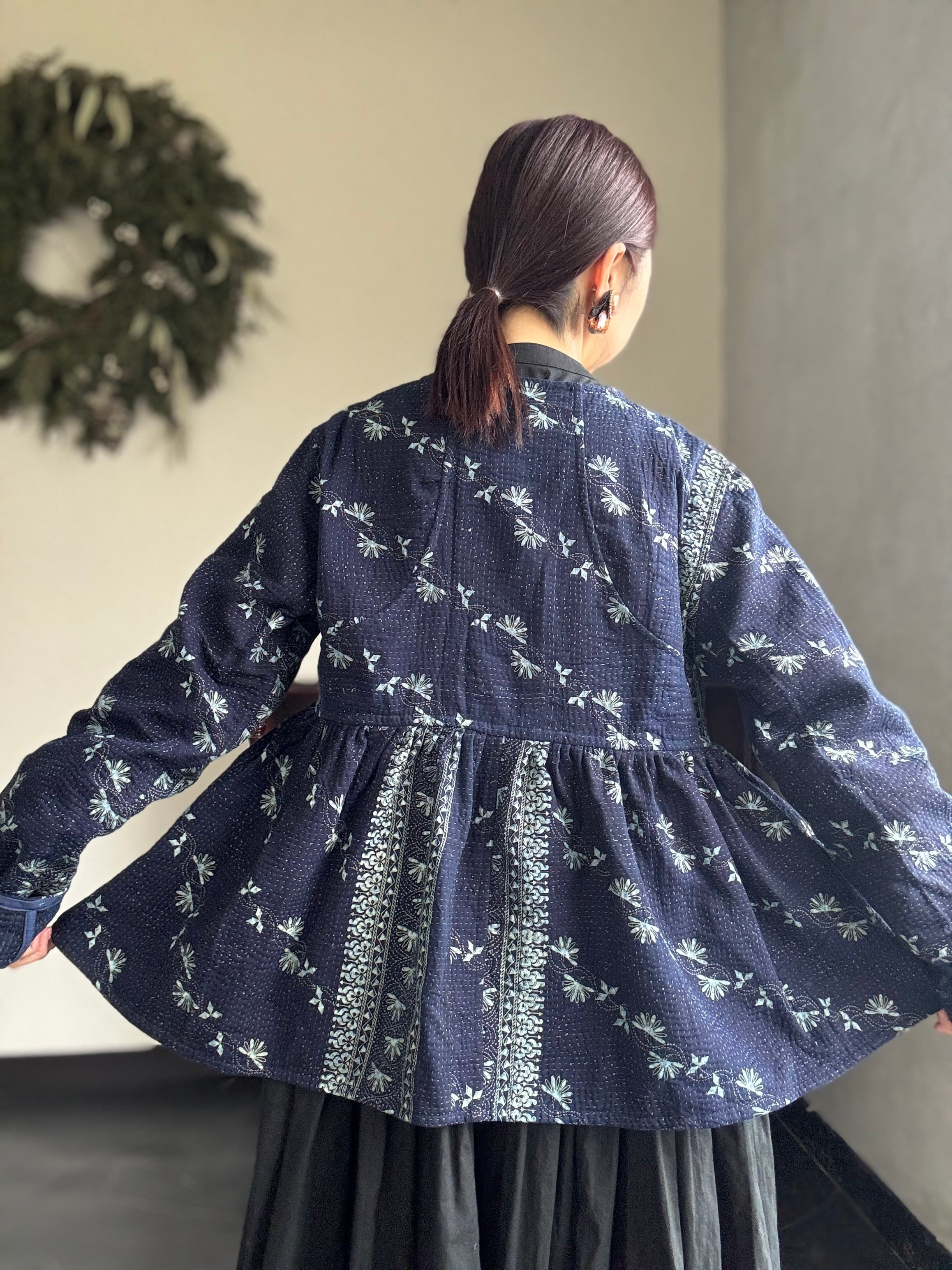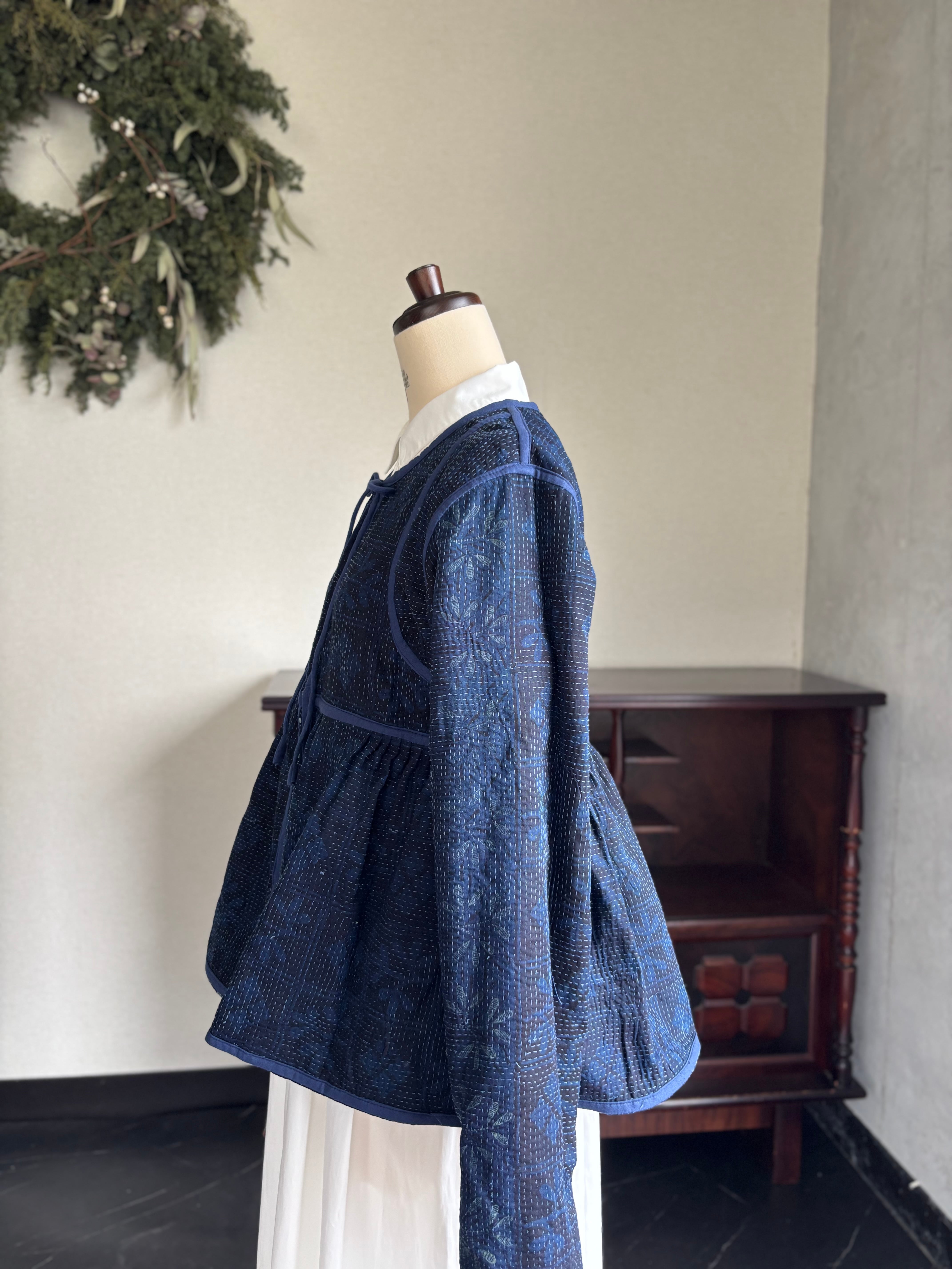 ヴィンテージのカンタ(ラリー)キルトで仕立てた、ラバリジャケットです。長い時間を旅してきた布ならではの風合いを生かした、世界にひとつだけの一点ものとなります。