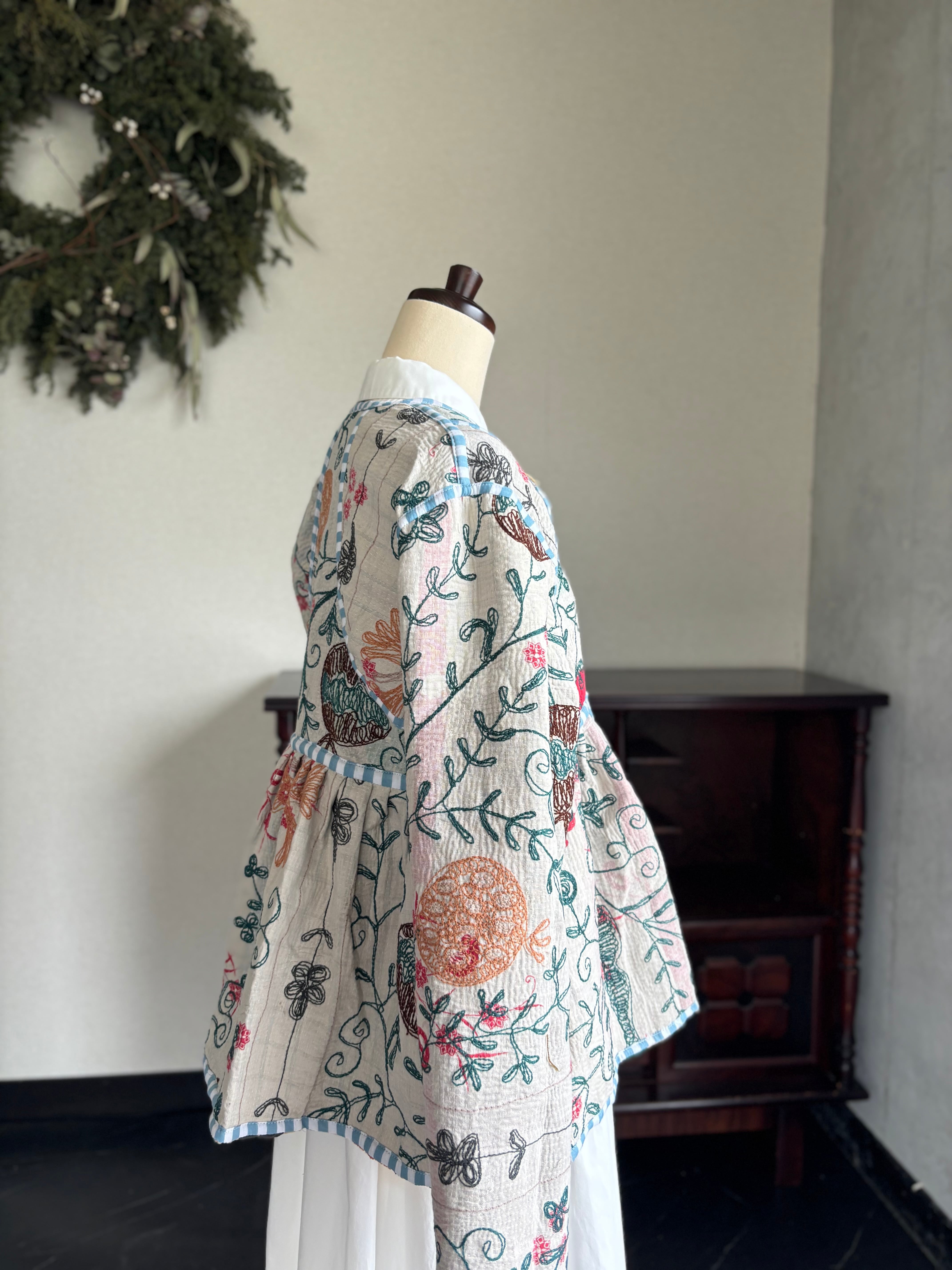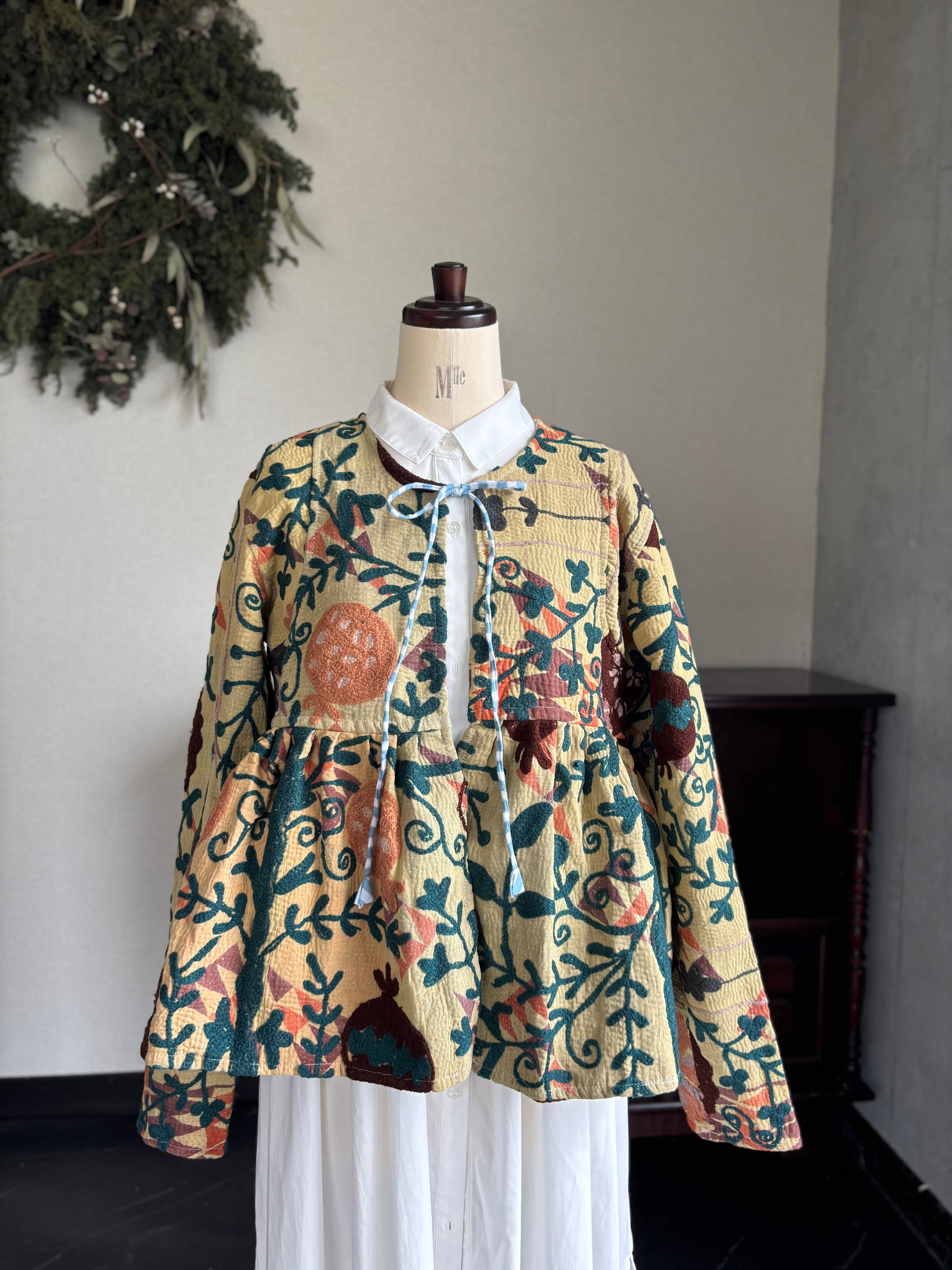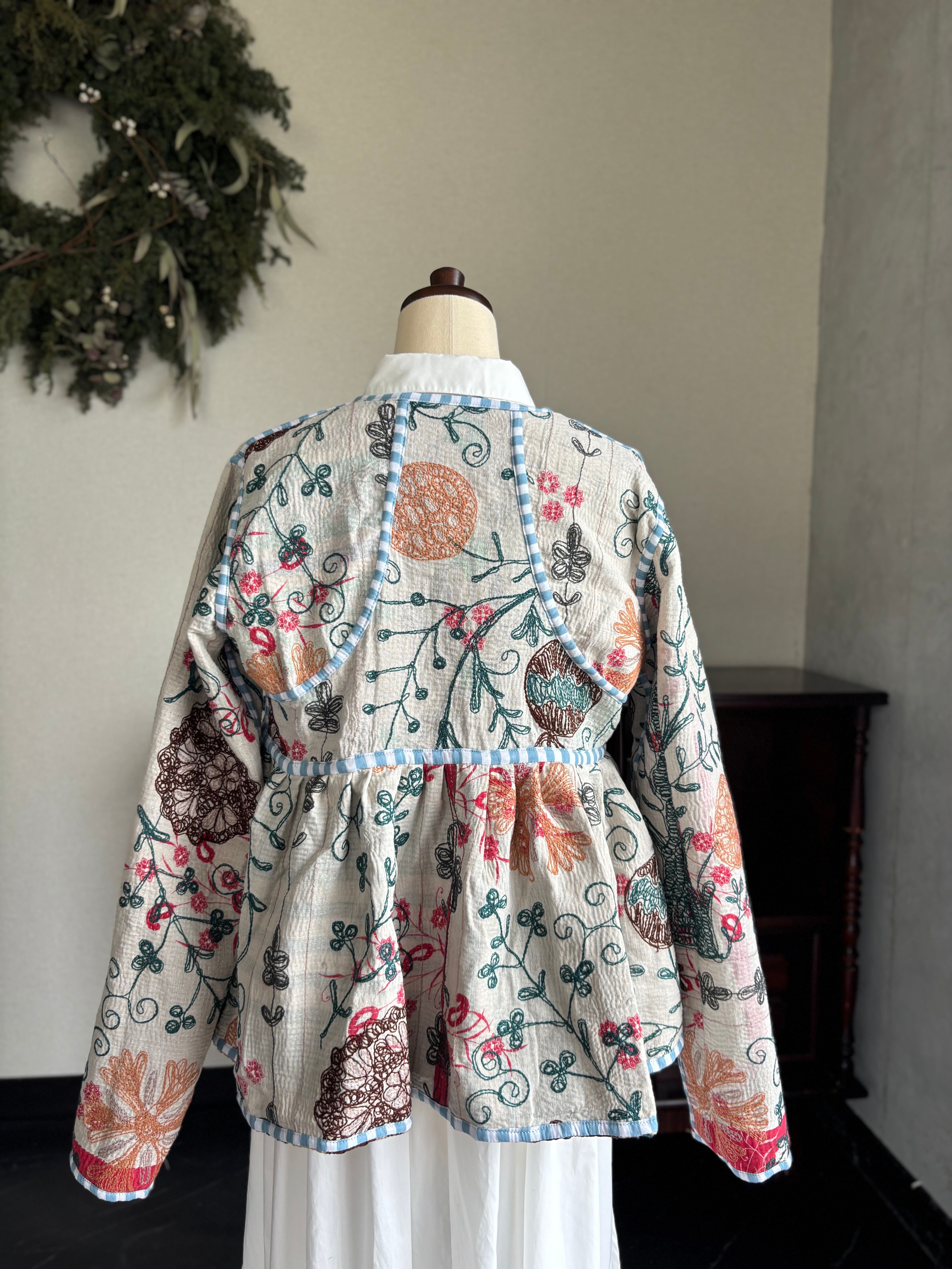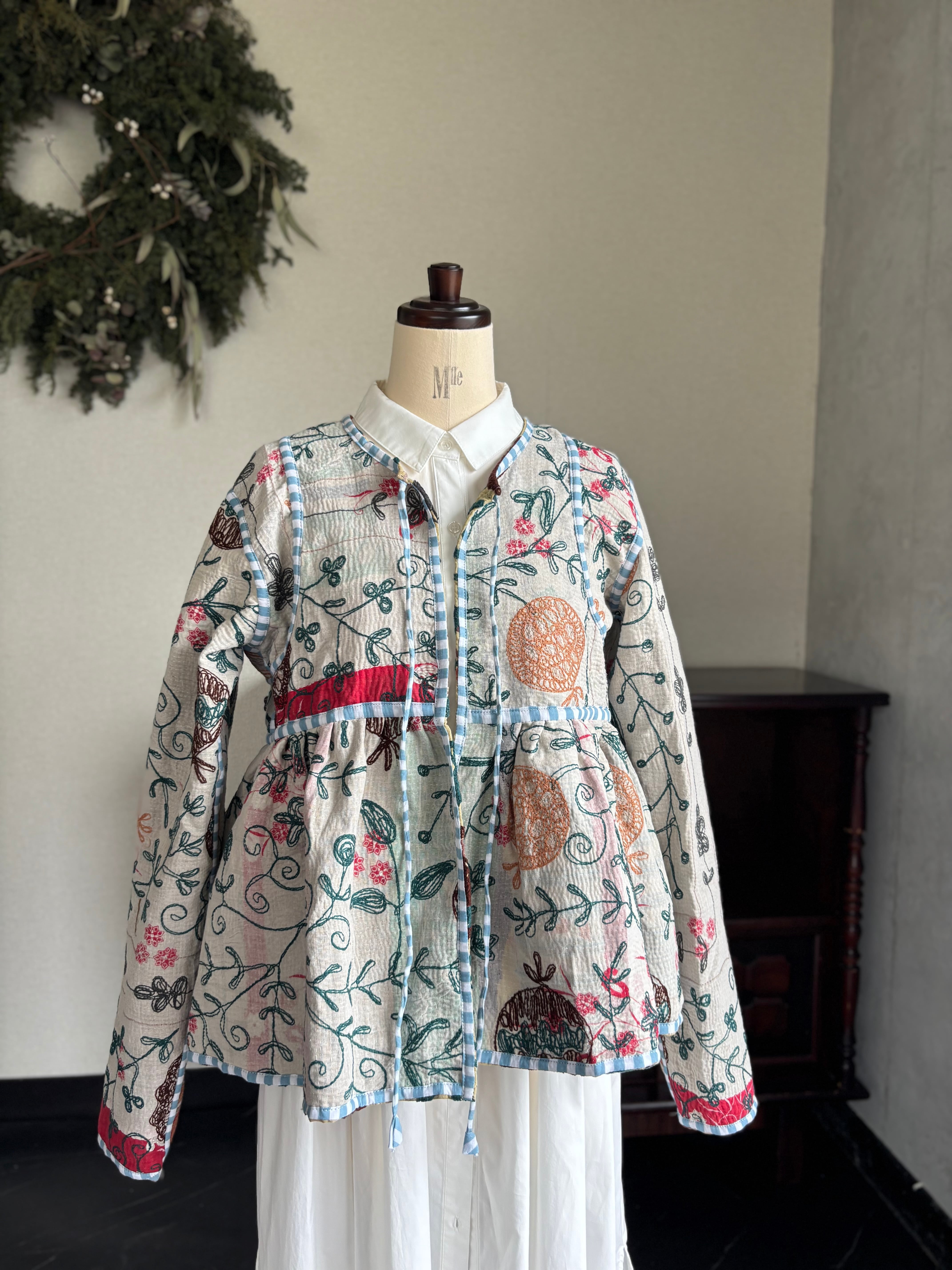 ヴィンテージのカンタ(ラリー)キルトで仕立てた、ラバリジャケットです。長い時間を旅してきた布ならではの風合いを生かした、世界にひとつだけの一点ものとなります。
