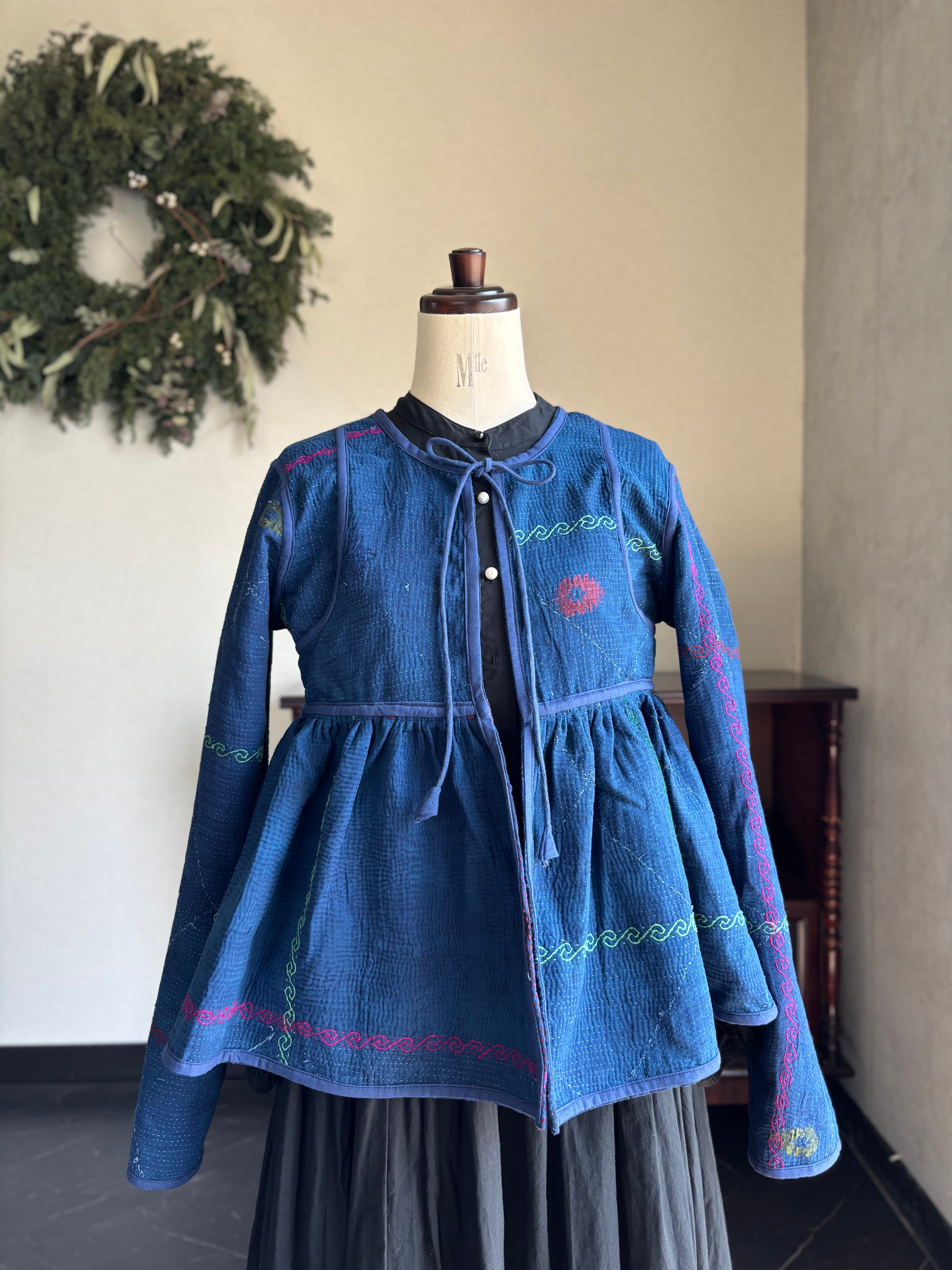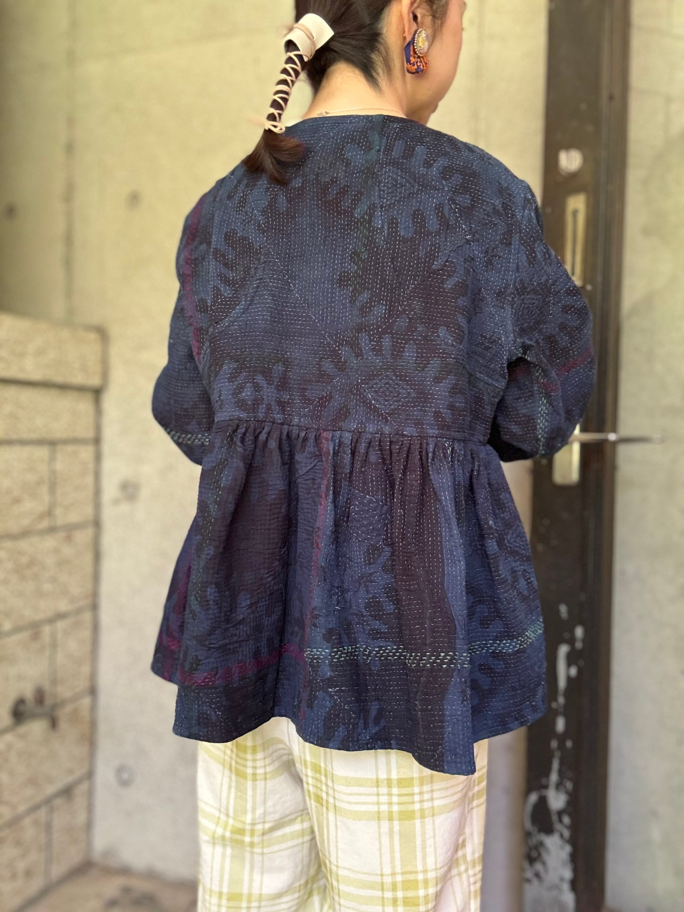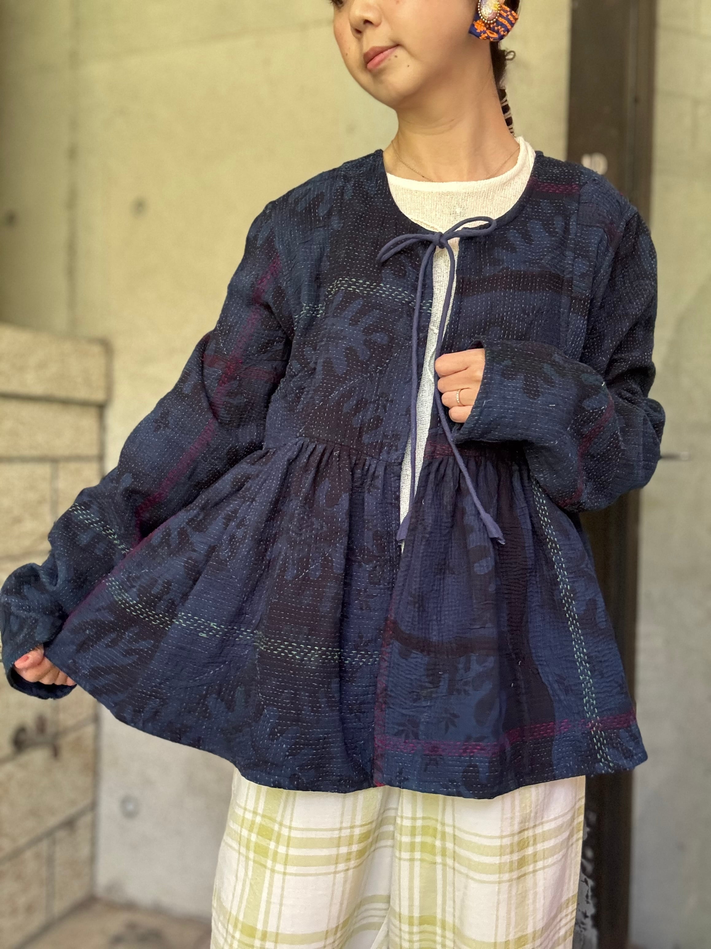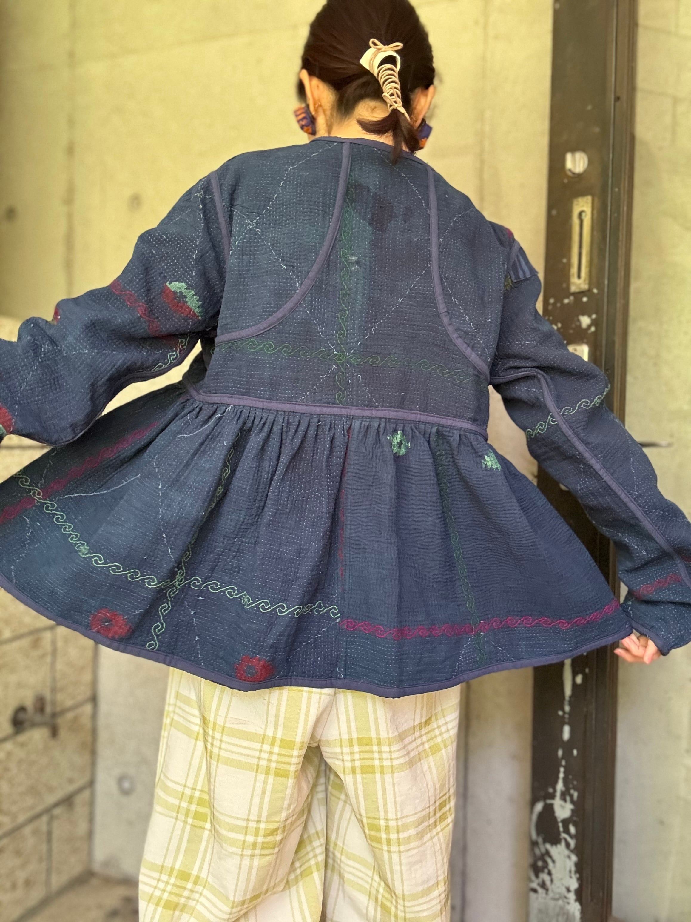 ヴィンテージのカンタ(ラリー)キルトで仕立てた、ラバリジャケットです。長い時間を旅してきた布ならではの風合いを生かした、世界にひとつだけの一点ものとなります。