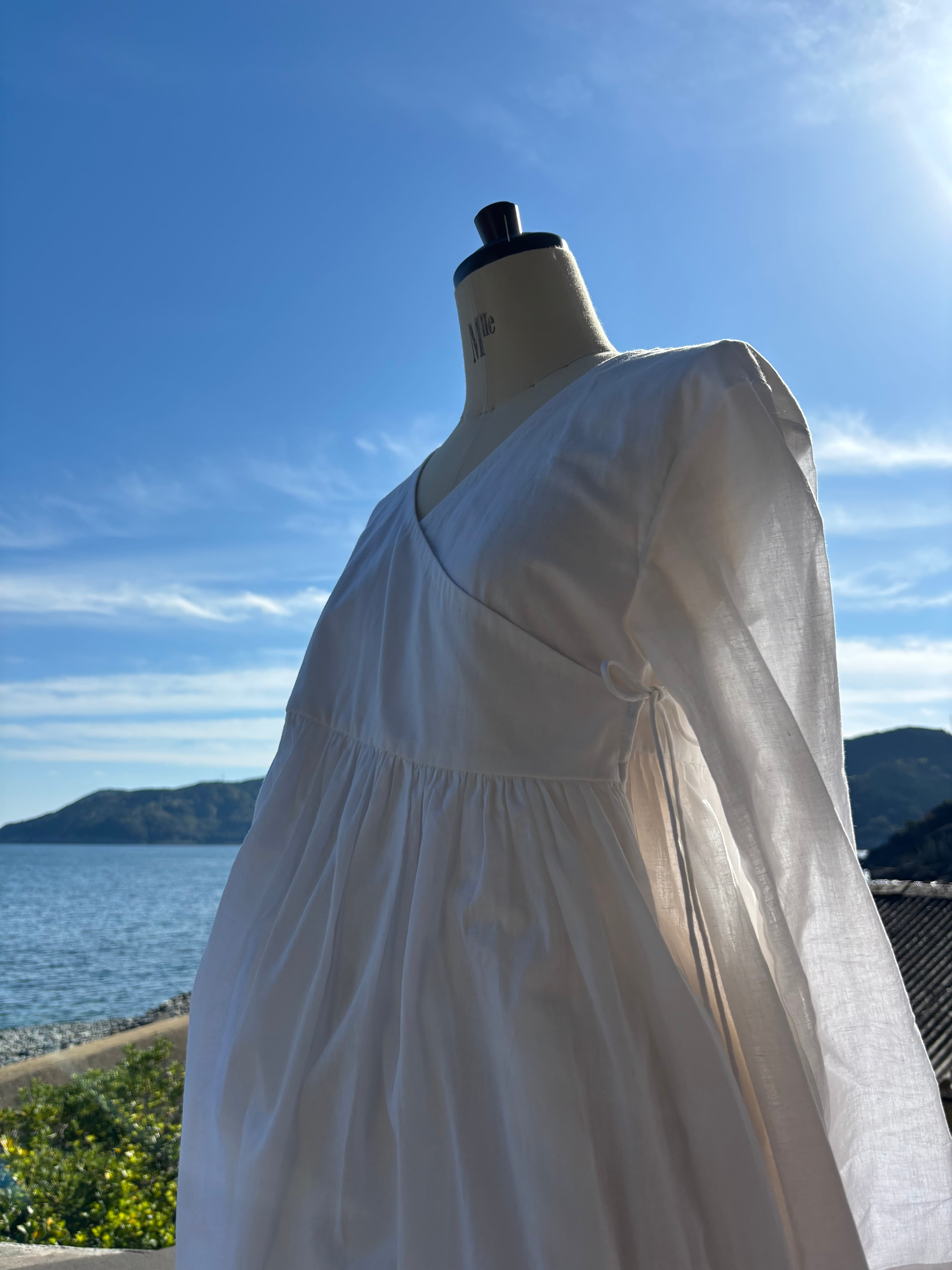 手紡ぎ・手織りでつくられたカディコットンを、贅沢に使用した一着。