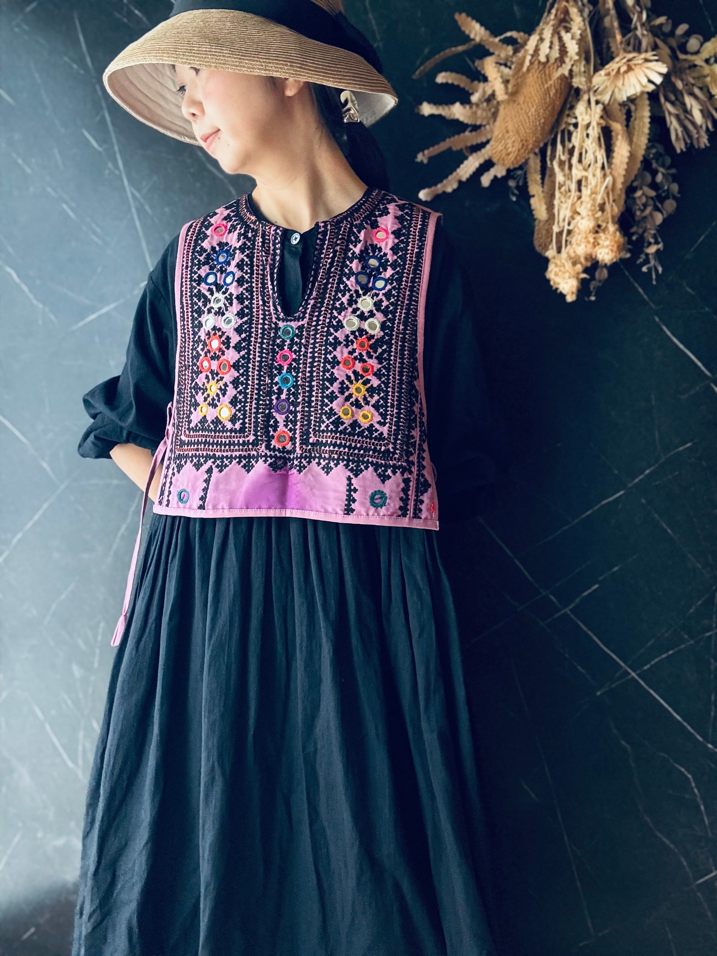 バロチ族が日常着として大切に纏ってきた民族衣装の刺繍を使用。